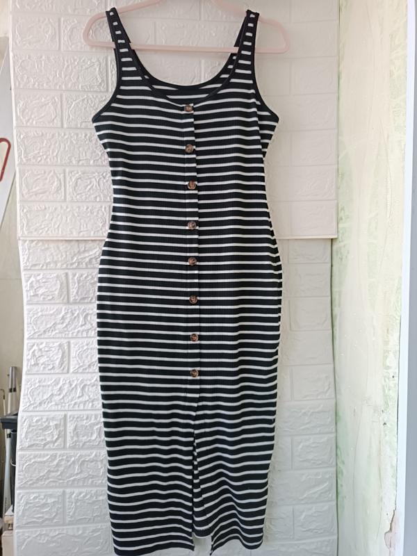 красивое платье сарафан в полоску черно-белого цвета, длина 113, полухват груди 45 и тянется до 64, п/ б 47 и тянется к 69.