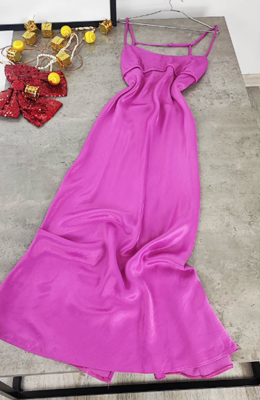 100% віскоза, гладенький сатин, незначно тягнеться Розмір UK12/40 (M) Довжина 128 см, регулюється Півобхват грудей 46 см Півобхват талії 40 см Півобхват бедер 56 см Стан нової речі