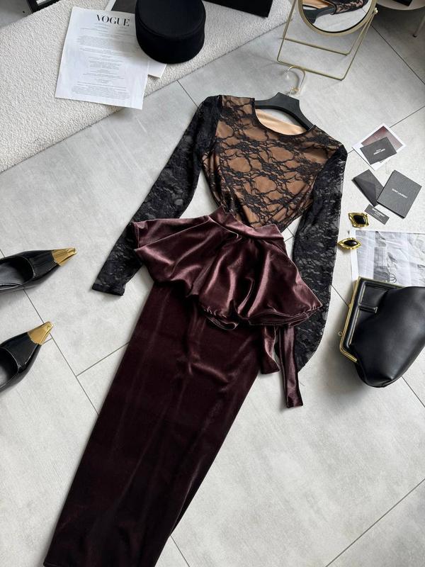 Сукня + баска, фото реал 🏷️ Ціна - 1500 грн💸 ⠀ ▫️Тканина: оксамит, гепюр, масло ▫️Розміри: 42-44, 46-48📌 ▫️Кольори: чорний, т. мокко, т.смарагдовий ⠀ Розкішний оксамит, ніжне мереживо та ідеальний крій — це сукня, що створена, щоб підкреслити твою жіночність. Баска елегантно формує талію, роблячи силует спокусливим та вишуканим. ⠀ Модель 0161 ПРАЦЮЄМО ПО ПЕРЕДПЛАТІ 50%‼️ПОВЕРНЕННЯ НЕМАЄ‼️ВІДПРАВКА 2-5 РОБОЧИХ ДНІВ 🚚🚚 .аммі.