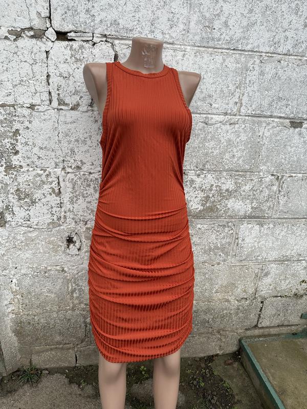 Жіноча сукня розмір с міді з акцентом на фігурі оранжева