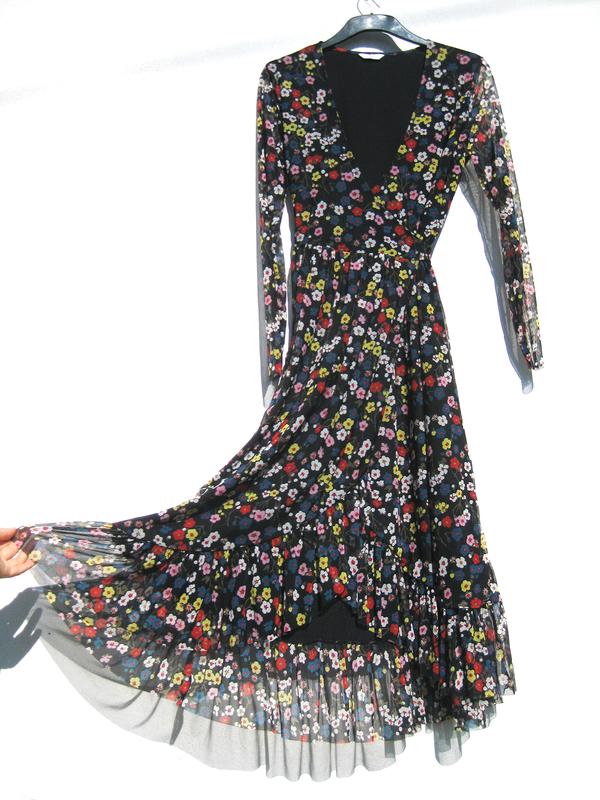 Красиве квіткове мідіплаття-сітка на захід із поясом із м'якого фатину envii