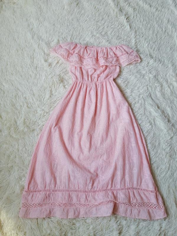 Сукня довжина міді натуральна бавовна відкриті плечі волани прошва