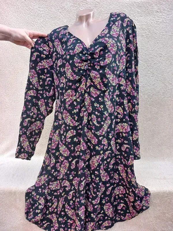 Цікаве тонке плаття,віскоза штапель, становлення ідеал НО грудей 60, НО талія ззаду гумка 50-60, НО стегна 75, рукав 63, довжина 103 Замери відзнаки половина