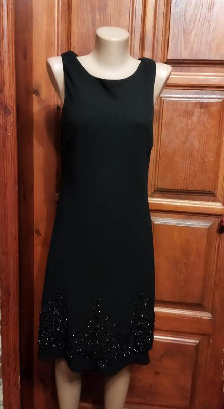 б/у состояние -очень хорошое Kрасивое платье, украшенное по низу черными бусинами приятное к телу, не мнется есть подклад-нейлон + шифон по низу Замеры: пог-50-54см пот-51-56 см пос-62-66см длина-96см Открытка Укр-почтой, Новой почтой