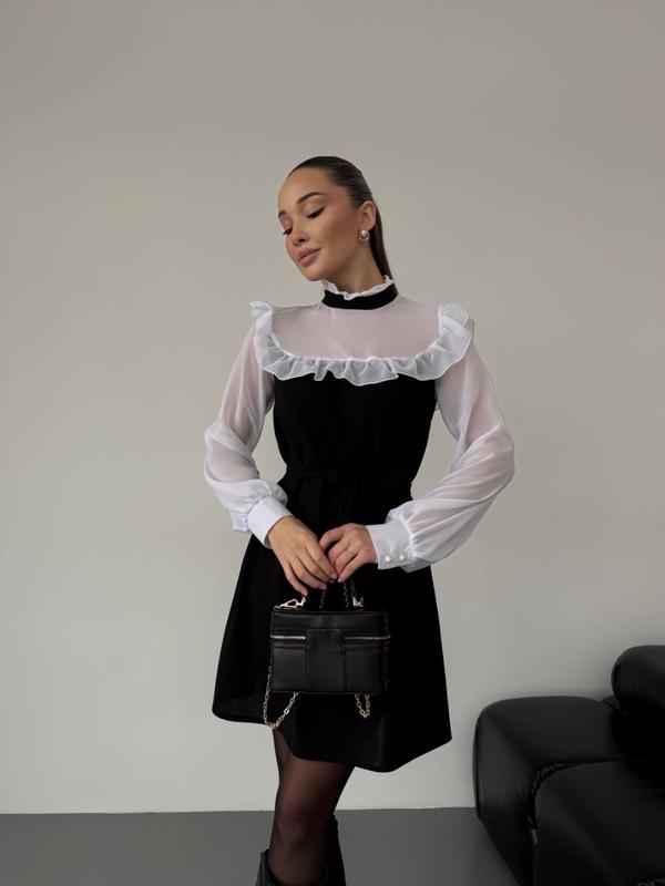 Жіноча святкова сукня з рюшами з креп-дайвінгу та шифону, чорно-білий дизайн, розміри 42–5...
