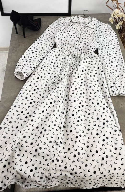 Легка, щільна бавовна, є підкладка Є кишеньки Розмір UK12/40 (M) Довжина 124 см Півобхват грудей 53 см Півобхват талії 37 см, на резинці Півобхват бедер близько 62 см Довжина рукава 66 см Ширина плечей 34 см Стан нової речі