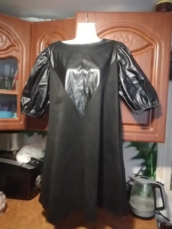 Плаття з якісними шкіряними вставками,все інще мякенька замша.Довжина 87,рукав 37,ог 50(півобхват)Є кармани.