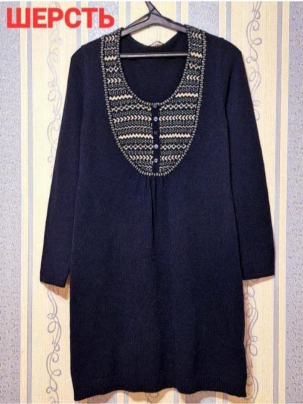 Тепле, затишне плаття британського бренда M&S. Шикарний склад: 50% вовна + 50% акрил, чудово тягнеться. Колір темно-синій. Довжина — 100, пог — 54 (тягнеться).