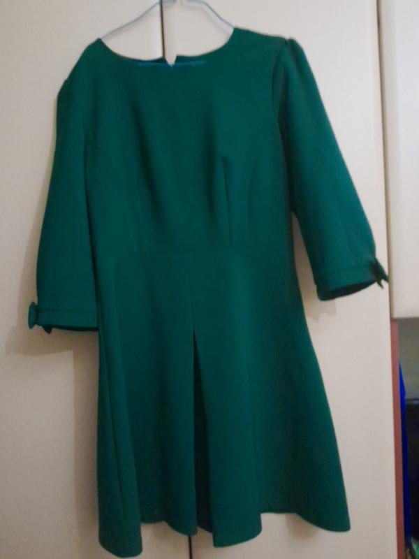 Плаття дуже гарне .Продаю бо вузьке Спинка відкрита скріплена бантами Підійде і на дівчинку Довжина 87см Пояс 38 Рукав 44 в грудях 42см Плечі 40см.Тканина чуть тянеться