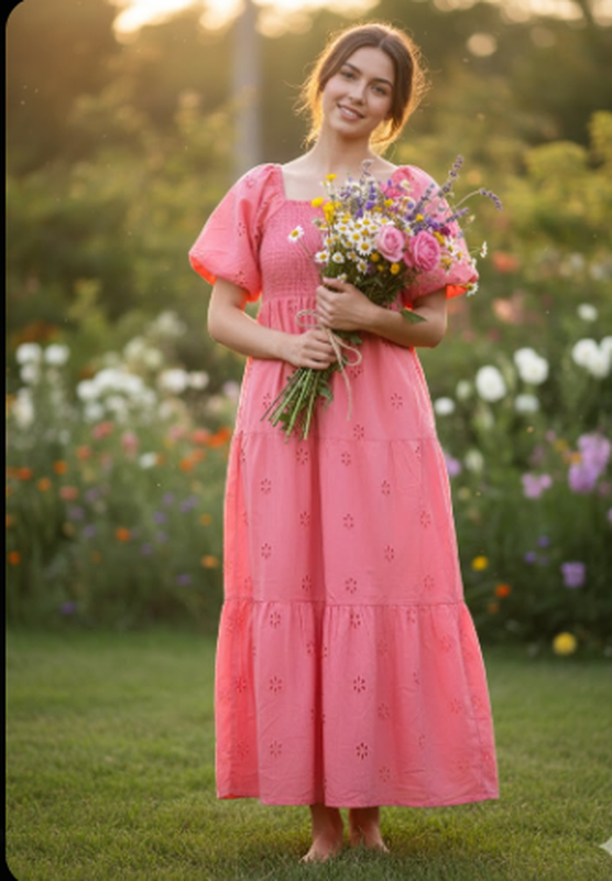 Бавовняне мідіплаття Studio. Короткі об'ємні рукави. Ярусний фасон. Груди та спинка на гумці. Є підкладка. Розмір 8 Довжина 122 пог 38-48 пот 36-46 поб 60