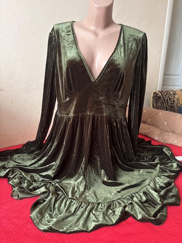 Нова оливкова,оксамитова сукня,розмір 2Х,зробить вас перевершеною.
