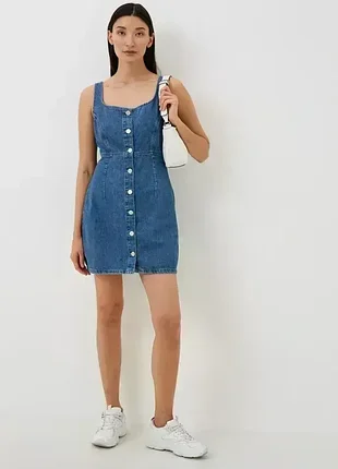 Классический джинсовый сарафан, на пуговицах, хорошо тянется, хлопок, состояние новый с биркой ПО груди 54, ПО талия 50, ПО бедра 58, длина 89 Замеры отличий половина