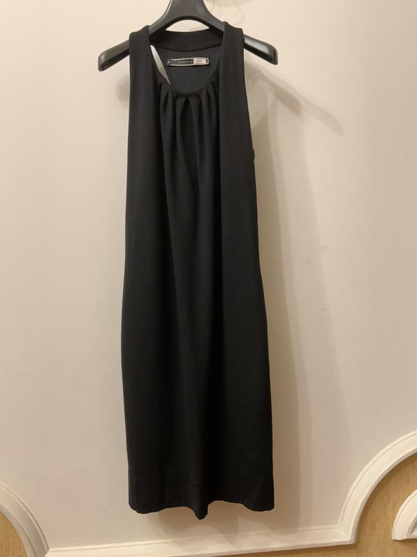 Маленька чорна сукня необхідна кожній жінці,для любого випадку завжди стримано елегантна,гарно відкрита спина,можна без білизни,всередині є слой що підтримує як в топах,з переду вільно,по фігурі потім на бедрах ,до колін(закриває) довжина ,стан ідеальний,вдягала декілька разів,можна і влітку і взимку ,плотний трикотаж,приємний до тіла,звертайтесь