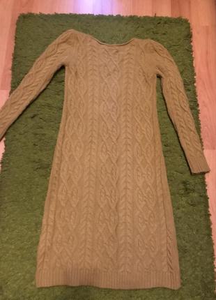 Актуальне плаття-светр в цьому сезоні пісочного кольору довжини міді