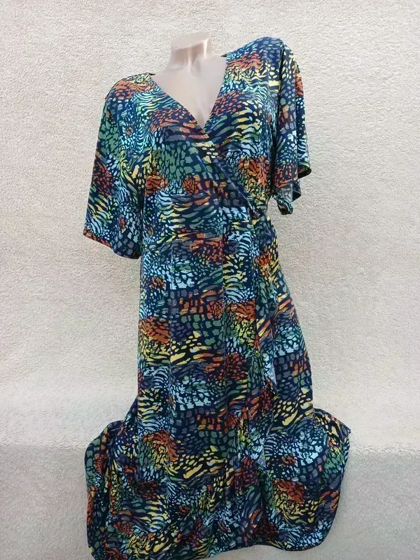 Цікаве плаття, тонке, унизу валан, імітація запаху, наявність нового НО грудей 57-64,ПО талія 50-57,ПО стегна 60-68, довжина 129 Заміри всюди половина