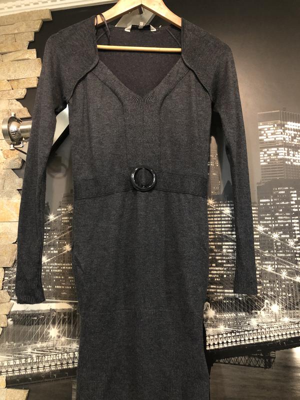 Гарне тепле м'яке зручне плаття-туніка темно-сірого кольору з вирізом V,розмір М,підійде і на S,добре тягнеться