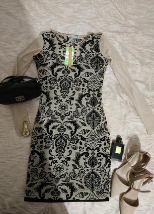 Бомбезное 💣💥 сукню коктельное розмір S XS На нюдовой сіточці проштампований оксамитовий візерунок. подвійне, під низом дуже щільна бавовна тканина тягнеться. Дуже дорого виглядає. Нове зі всіма бірками. Плаття святкове і дуже якісне. Виробництво Ізраїль.