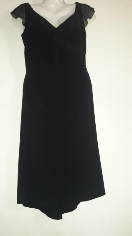 Платье, очень элегатное .Идеально сидит на фигуре. Впереди платье короче, а взади длиннее. Есть кнопки, для лямок бюстгалтера. Замеры: Длина платья впереди 105см.Длина платья взади 115см.Пог 52 х2, Пот 46 х2 , Поб 55х2.