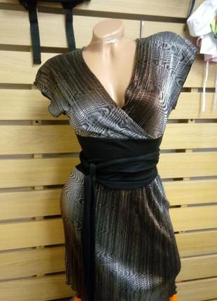 Колір червоно-сріблястий, золотисто-сріблястий. Ошатне плаття в золотисто-сріблястому кольорі, чорна вставка з поясом підкреслює талію, глибоке декольте на запах. Тканина легка, еластична. Заміри: пог. 42см, пот. 36см (тягнеться), побіди. 46см, довжина 85см. Виробник США Milliore. Самовивіз знижка 5% Код товару 5085