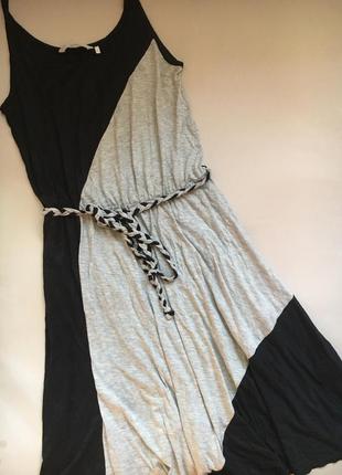 Плаття на тонких бретелях. Плаття йде на гумці і зав'язується під пояс. Р-р: вказано L,але підійде на M.
