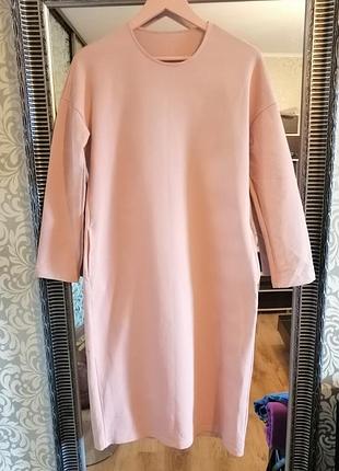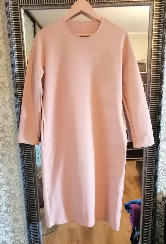 Стильне, трикотажне плаття-міді, красивого сяк-рожевого кольору. Розмір М, Довжина 110 Плечі 58 Рукав 46 Пог 50 Побіди 52