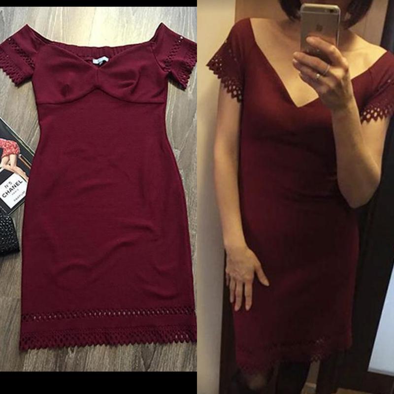 Изысканное платье из качественной ткани, оригинального кроя с красивыми вырезами на рукавах и по низу платья от love tm. Смотрится во истину по королевски! ;) Размер: М. Замеры: длина по спинке- 84 см., полуобхват груди- 42, по талии- 36, по бёдрам- 45. Ткань тянется! (На фото- рост: 168, по груди с бюстгальтером около 88-90, талия- 72, бёдра- 92) Цвет: марсала Цена 500 грн