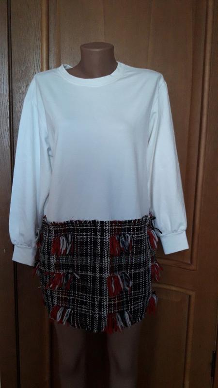 Стильне плаття. Без дефектів ( плям і зачіпок). Стан ідеальний. Прямий крій. Розмір Л, на зріст до 168 див. Орієнтуйтеся на заміри. Довжина 79 ПОГ 46-48 Рукав від горловини 68 ПІТ 38-41 ПОБІДИ 46-48 Запитуйте буду рада відповісти на всі ваші запитання!!! Дивіться інші мої оголошення для Вас є якісна та недорога одяг !!!