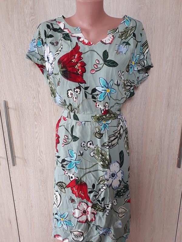 Размер 14,можно и на 12.Длина 96,ПОГ 60,ПОТ 39,затягивается поясом.Вискоза.