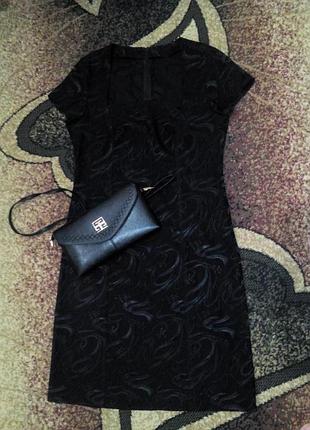Ошатне плаття шите по бурді, тканина дуже якісна і у виріб виглядає дуже красиво, ніби шовковими нитками вишитий візерунок, стрейчева, дуже добре тягнеться але в теж час щільна, по талії і стегон сідає як з утяжкой. Можна носити як для торжества, чіпляла до сукні красиву тканинну брошка квітка, а можна під водолазку як офісний сарафан. Довжина від плеча 100 см, пог 48-50 см, пот 43 см, побіди 51 див.