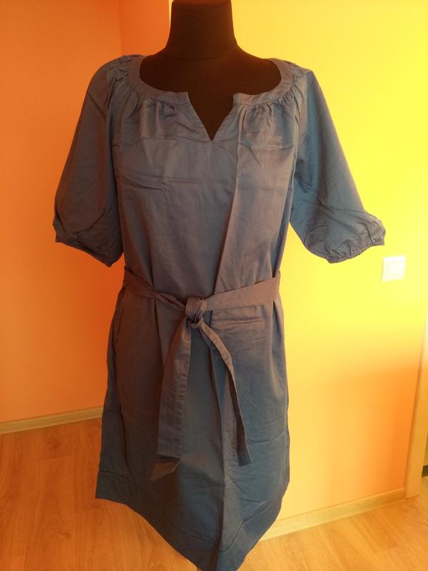 дуже легке котоновое сукню. покрій - трапеція. дл 93, Пог 55, Пот57, Побіди 60. колір синій, на фото переданий спотворено.