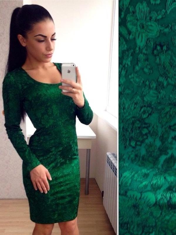 Плаття з трикотажу - жаккарда. Розмір S. Тягнеться, не мнеться. Довжина сукні - 95 см. Довжина рукава - 59 див. ПОГ - 38 див. ПІТ - 37 див.