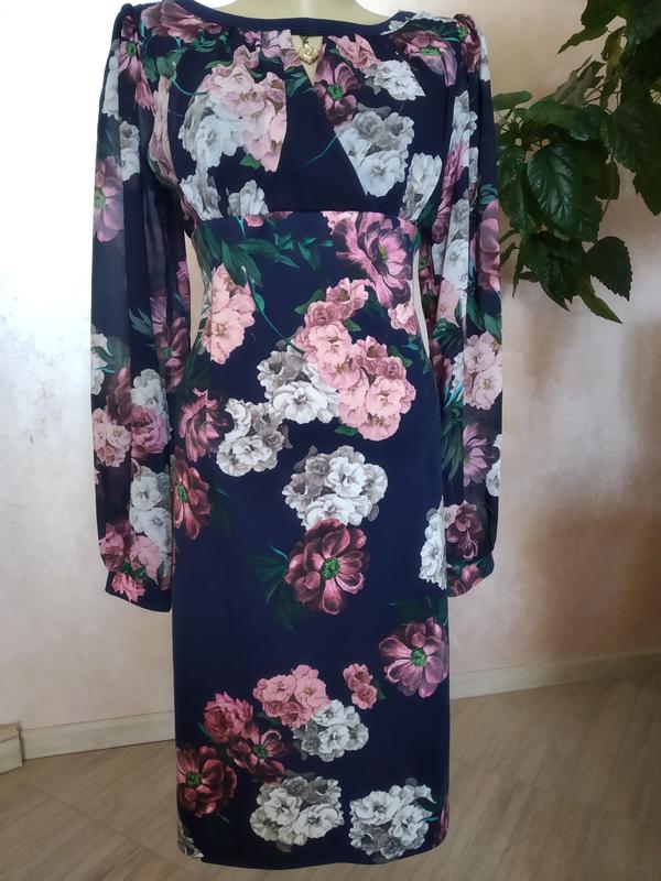 Мила сукня виготовлена з двох видів тканини: верх і рукава з шифону, а все інше щільний трикотаж. Рукава на манжетах, завдяки чому шифон гарно та пишно лягає. Довжина - до коліна.