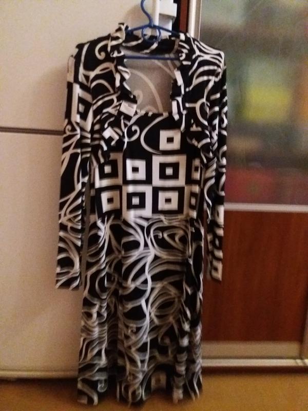 Плаття з трикотажу , класичного крою, можна носити з паском чи без. ПОГ 47, ПІТ 45, ширина низу 74, довжина по спині 101, довжина рукава 60 див. Пишіть, будь ласка, відповім на всі запитання.