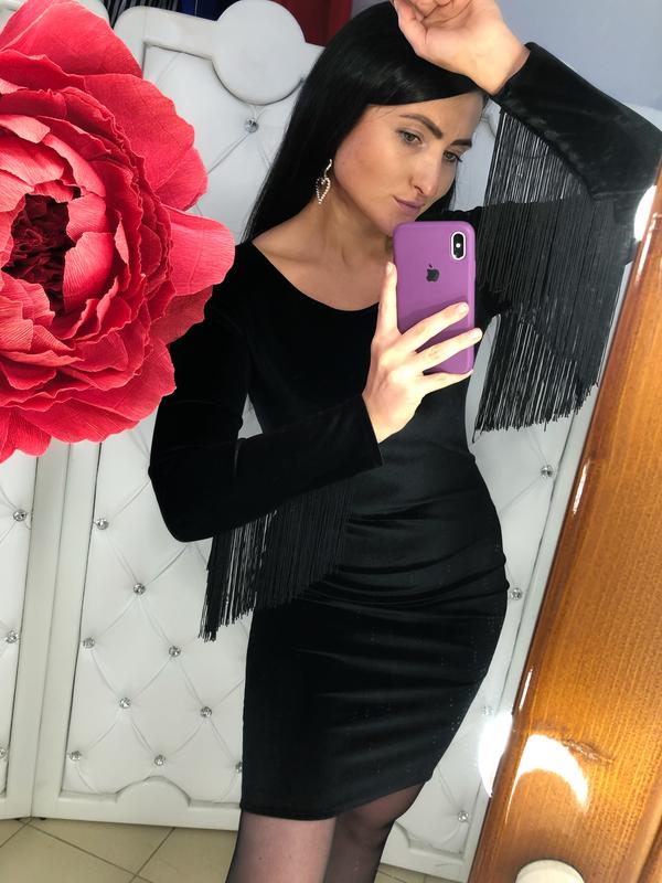 Красиве оригінальне плаття з бахромою 🔹тканина дорогий благородний оксамит 🔸довжина 100 см 🔹плечі 42 см 🔸талія 38 см 🔹стегна до 110 см Добре тягнеться Якість оксамиту ідеальне