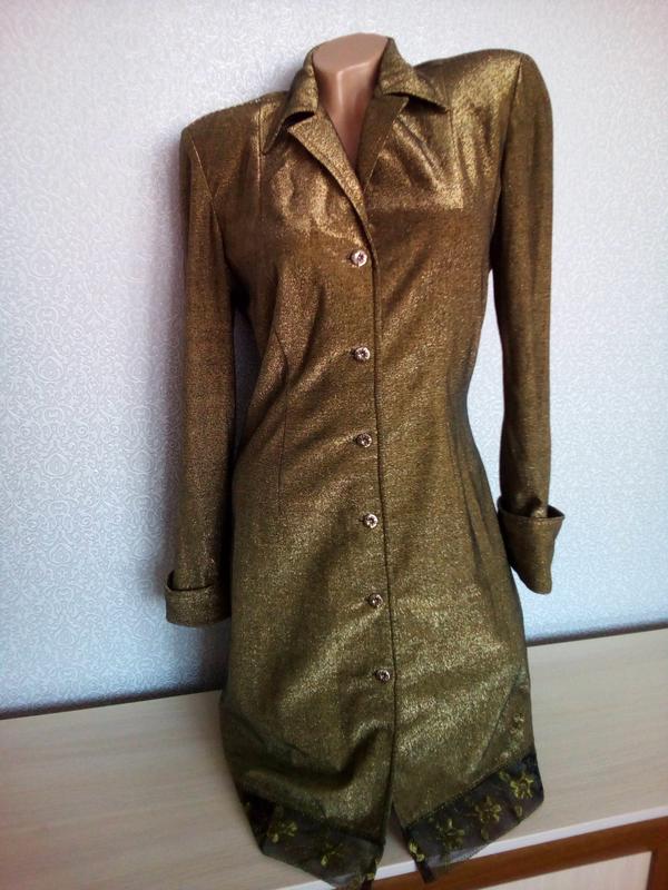 Ошатне плаття. Тканина трикотажна з люрексовою ниткою, дорога, купувала в Німеччині. Шила сама. Спереду можна розпороти, буде застібатися, як халат (було мало, застрочила, щоб не розходилося). Довжина посередині спинки 94. ПОг , під проймою 48. Піт 40. Поб 49. Довжина рукава з загорнутою манжетою 59 див. На невисокий зріст, у мене 157.