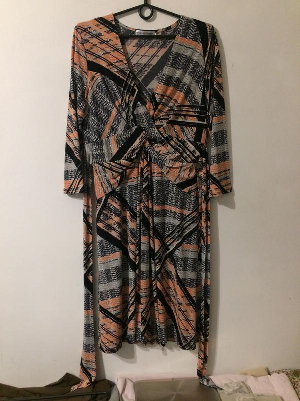 Гарний стан розмір вказаний 16 але підійде на 18 теж Плечі 44-46 см Пахви 50 см добре тягнеться Талія 46 см Пройма 24 см рукав-50 см Довжина від плеча 106 см Все добре тягнеться