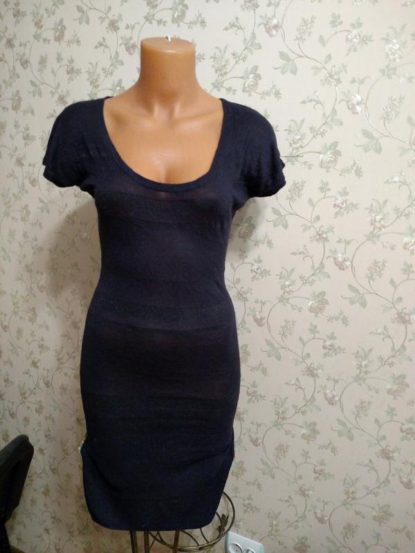 Тоненька,подовжена кофточка,або тонке платтячко,туніка,дуже тоненька,ніжна,з блискучими,не яскравими смужками,колір темної бузку,логотип,бренд нашитий на самому сукню,розмір с,м,є унизу маленька дірочка,так,як платьеце темне,зашити,вона буде не помітна