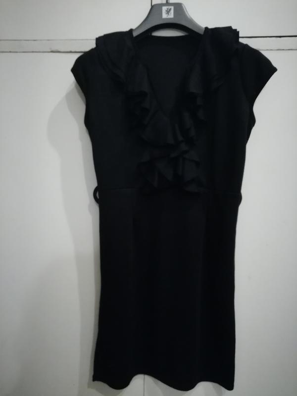 Сукня трикотажне з оборкою на грудях, відрізне по лінії талії, без підкладки. Довжина по спині 86 см, талія 37 см, ПОГ 46-46 см, розмір 36/38