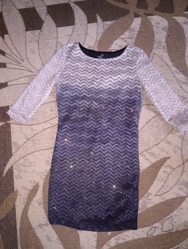 Стан нового, одягала лише один раз, трошки для мене завузеньке). Не секонд, привезли з Німеччини. Пог 47,поб 46,пот 44,тканина тягнеться. Довжина плаття від плечового шва 88 см,ширина плеч 44.Ідеально лягає по фігурі, і також скриває недоліки переходом кольору.