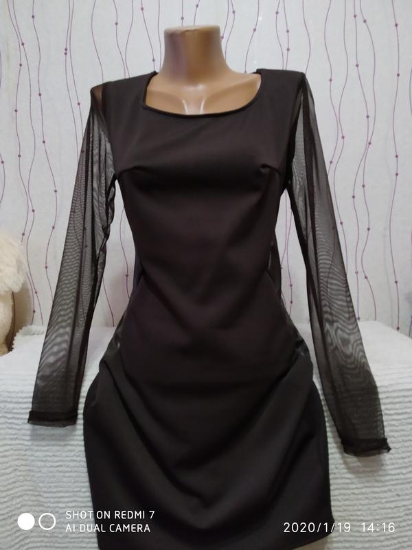 Р 44. Рукав сітка,з боків вставки під шкіру. Дуже красива елегантна сукня. Без дефектів