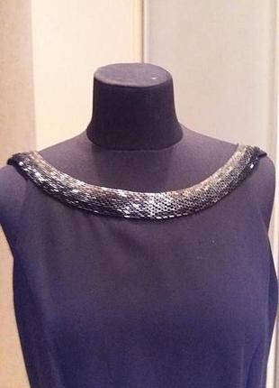 Очень красивое.нарядное платье черного цвета Principles(Англия) на все случаи жизни)) с бисерным кантом(черный+серебро)и оригинальным треугольным вырезом сзади(бюстик в вырезе не виден).Немного приталенно.сбоку молния.сзади удобный для ходьбы шлиц.Замеры .ПОГ 46 ПОТ 42 ПОБ 48 Длина 96 см Допфото в разных ракурсах сделаю на все вопросы отвечу.обращайтесь.На моем "теле")) фото нет.оно мало.На примерки не езжу.Если Вы в Киеве можете забрать платье метро Политех