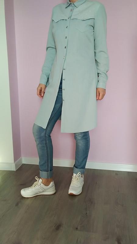 сорочка плаття трендового голубова кольору. довжина 95 см, довжина рукава 62 см шир плечей 40.5, підлогу.шир.по грудях 53 см по низу п. шир. 60 см по стегнах п. шир. 54 см комір 41