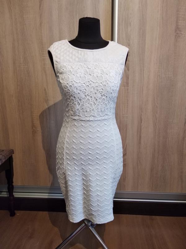 Крассивое приталену сукню міді білого кольору з мереживом розмір s - m