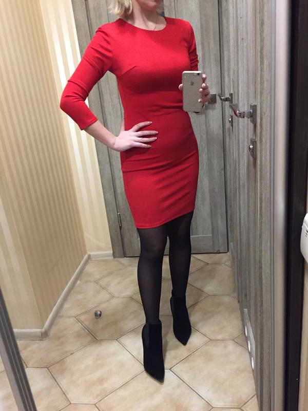 Ефектне червоне плаття розмір не вказаний одягнене на параметри груди 88, талія 70 стегна 90, добре тягнеться позаду не великий виріз, довжина 84