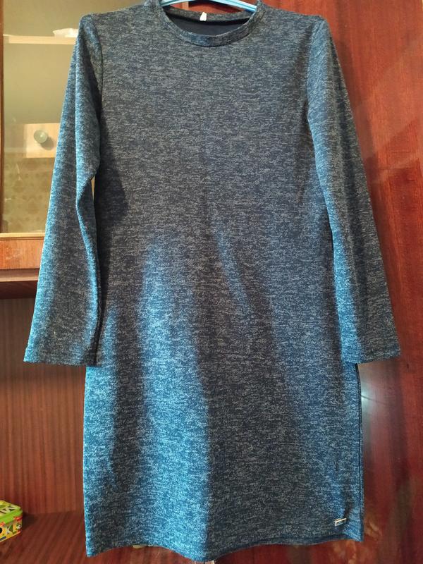 Синє меланжевої плаття дуже красиве Довжина 89 см дл рукав 57 см пог 47 см пот 42 см побіди 48 см добре тягнеться