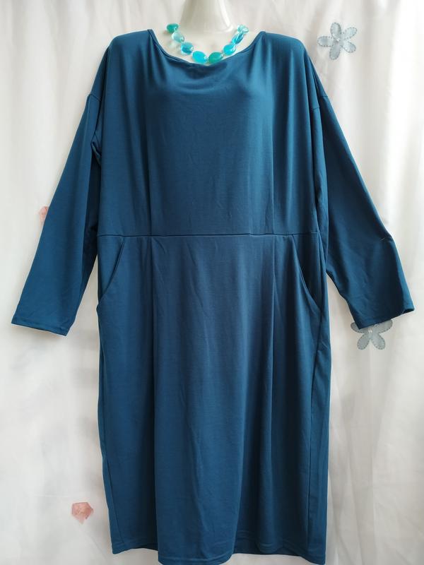 БІРЮЗОВЕ ПЛАТТЯ З КИШЕНЯМИ. КРАСИВО ЛЯГАЄ ФО ФІГУРІ. ПОГ.60 ПІТ. 51 ПОБІДИ. 63 ДЛ.103