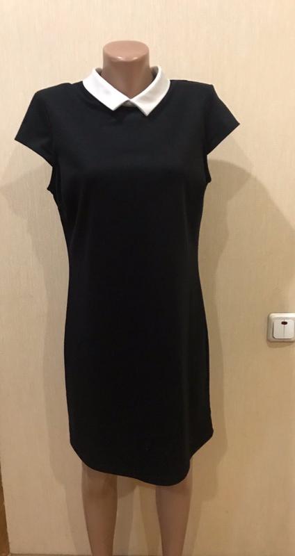 Черное платье с белым воротничком. Размер М. Длина 90 см ПОГ 48 см ПОТ 45 см ПОБ 49 см