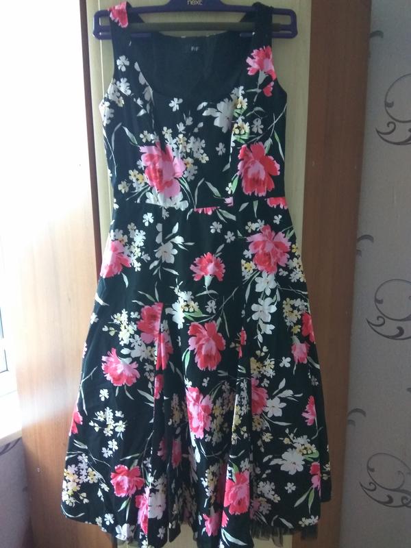 платье миди в цветочный принт из натуральной ткани. на боку потайная молния. на подкладке с пышной юбкой. замеры. пог 41 см пот 33 см бедра свободно длина 101 см.