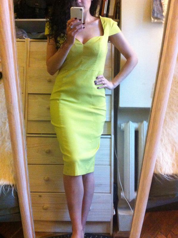 Розмір 12, одягнене на 94-72-96, зріст 170. Одягала один раз на пару годин, як нове, є бирка ПОГ 43(до 55) довжина 110. Дивіться інші мої оголошення, багато міді суконь на 10-12 розміри