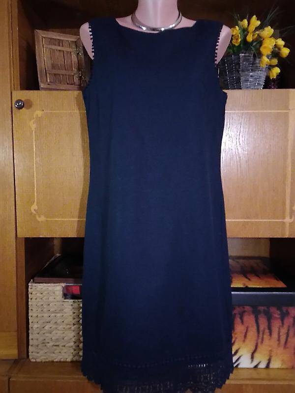 Темно синее платье. Вискоза и лён. Подкладка полиэстер. Размер 14. По спинке длинная змейка. Подкладка в двух местах немного разошлась по шву. Не критично. Плечи 38 см. ПОГ 50 см. ПОТ 49 см. ПОБ 55 см. ПО низа 54 см. Длина по спинке 92 см. ПО проймы 24 см. Смотрите все мои вещи! Есть разные размеры баталы обувь косметика аксессуары нижнее белье! #500